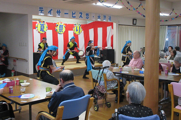 ご自宅から通いながら、入浴・食事・機能訓練・各種介護・レクリエーションなどのサービスが受けられます。